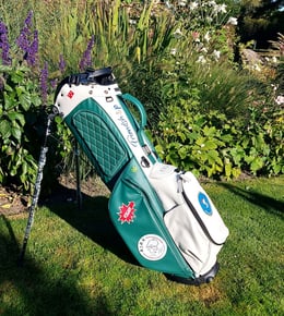 Een mooi persoonlijk cadeau is een sporttas, hier een golftas (een lekker groot canvas) met een levensverhaal in plaatjes en tekstjes. Vind hier meer info.