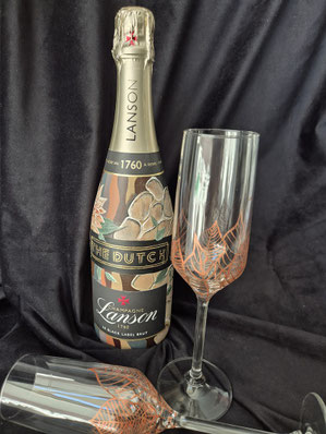 Voor de interieurstylist van dit restaurant mocht ik een champagnefles beschilderen met bijpassende glazen.