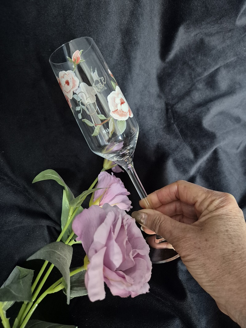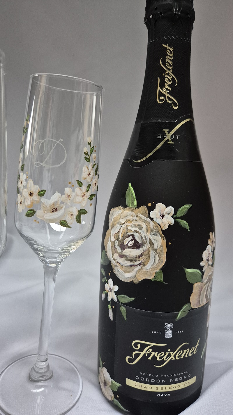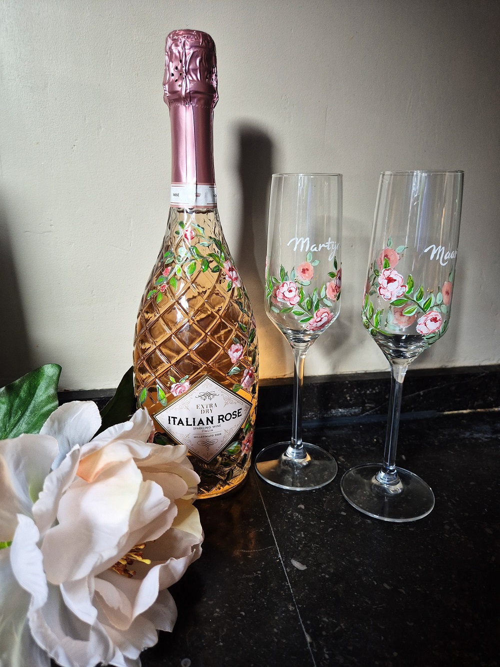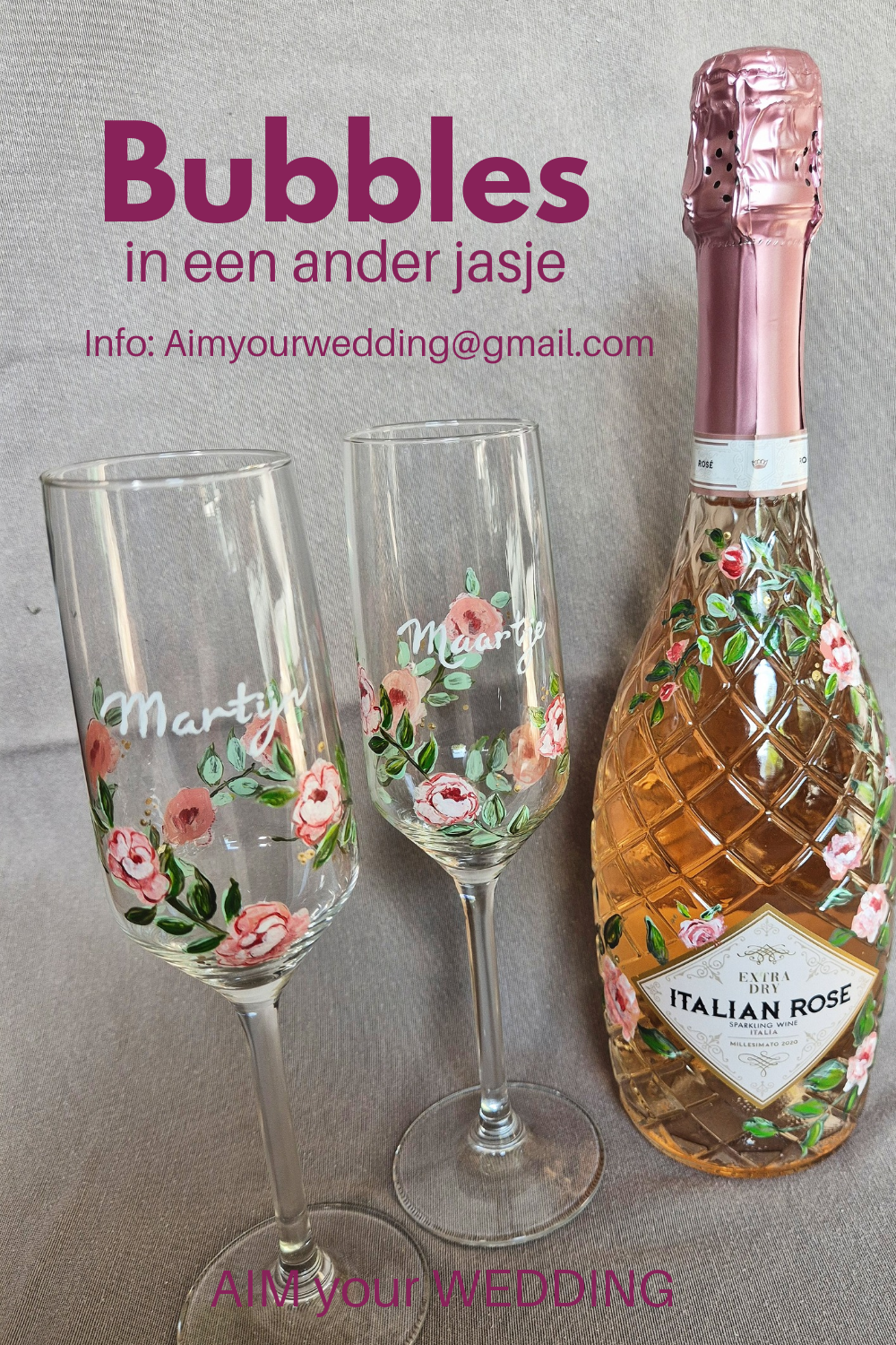 Geef elk moment een extra glans met handbeschilderd glaswerk. Van een stijlvolle champagnefles met bijpassende flutes tot unieke vazen: ieder item wordt met de hand ontworpen en beschilderd, helemaal passend bij de gelegenheid.