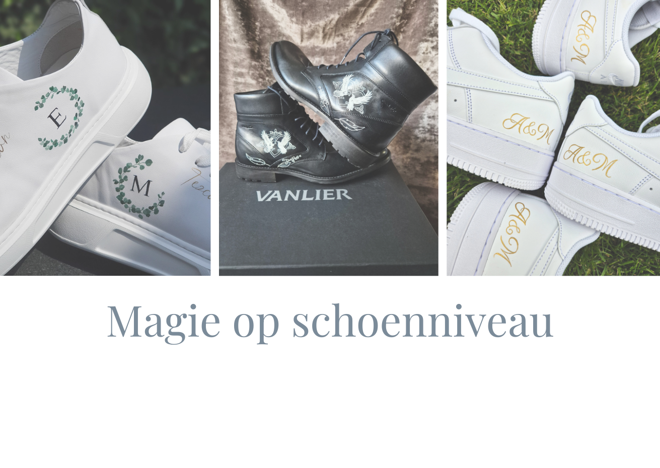 Bij Art & Blooming draait het om maatwerk. Waar veel aanbieders een vaste stijl hebben, kan ik iedere stijl aannemen die jij wenst. Van minimalistisch tot uitbundig, van klassiek tot modern: jouw schoenen worden precies zoals jij ze voor je ziet.